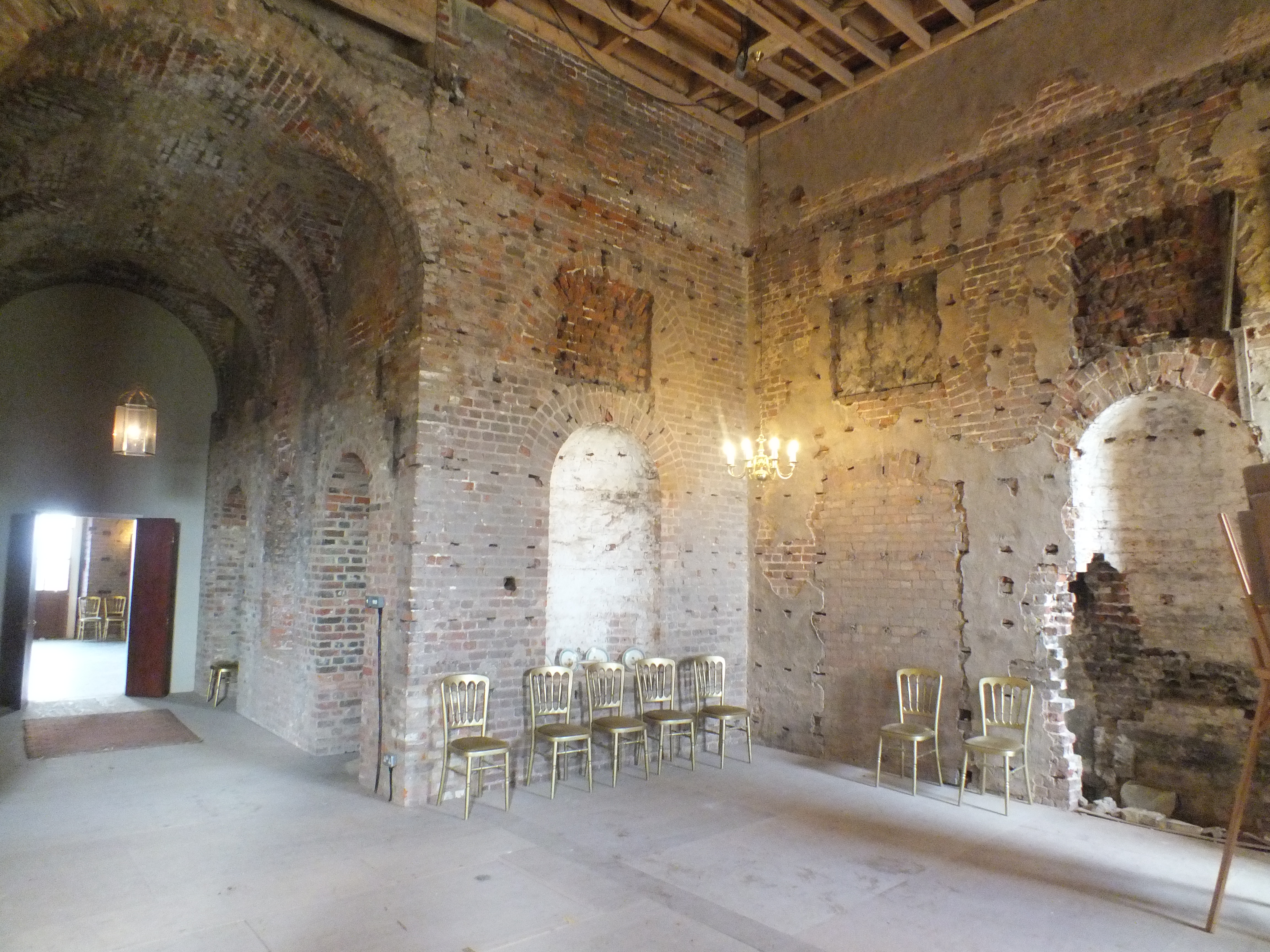 The exterior looks very much as it did, – extremely shabby chic might be a fair description – but inside a transformation has taken place. The main part of the mansion has been re-roofed, [even if only temporarily in part] the walls are drying out, floors and staircases have been installed and there is even an impressive single flight of marble steps starting to climb up from the hall to replace those smashed up in the 1950s.