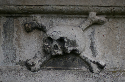 Skull and crossbones from a tombstone in the Huguenot Burial Ground, Wandsworth