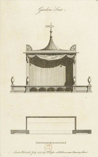 Design for a garden seat from John Soane’s Designs in architecture ; consisting of plans, elevations and sections, for temples, baths, cassines, pavilions, garden-seats, obelisks, and other buildings ; for decorating pleasure-ground, parks, forests, etc, 1778