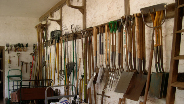 Tools in the potting shed, Wraxall, Somerset
