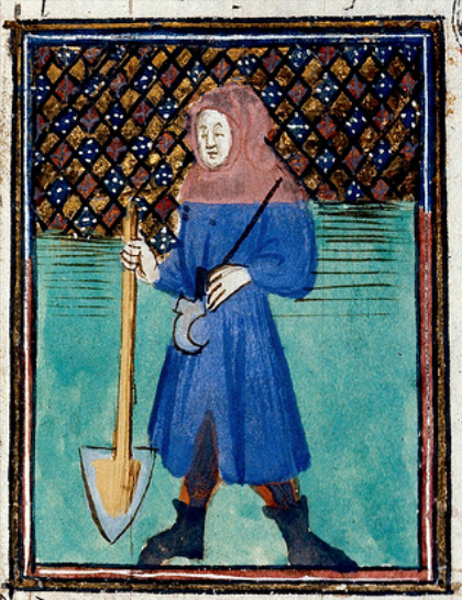 The first representation of a spade I can find is actually part of one of the oldest stained glass panels in Canterbury cathedral. It shows Adam hard at work using an iron-tipped spade with a mattock hanging on the branch of a nearby tree. Adam maybe be partially dressed but you’ll notice he isn’t wearing any shoes.