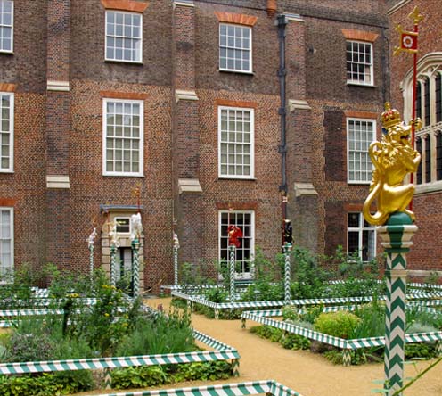 This was serendipitous because Longstaffe-Gowan was working with Historic Royal Palaces to recreate a small Tudor garden, complete with elaborately carved and brightly painted royal beasts in Chapel Court at Hampton Court.