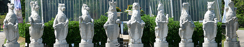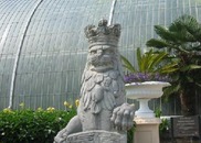 After the coronation a replica set was made in Portland stone and these are much better known because they are now lined up outside the great glasshouse at Kew where they are seen by millions every year.