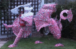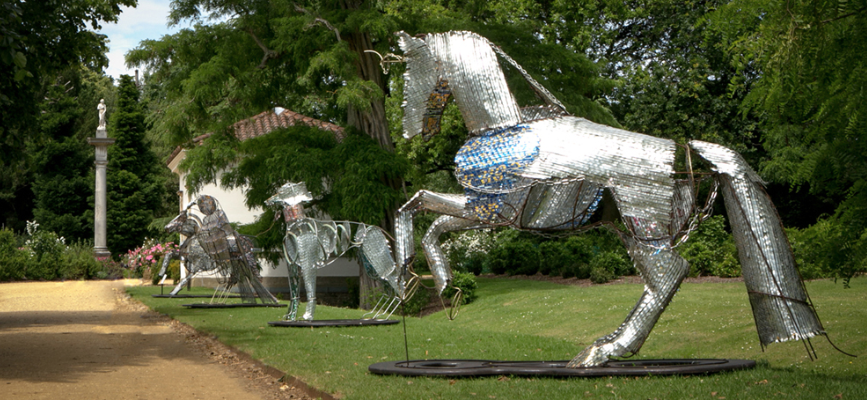 My favourite set though, are the whackiest yet. Made out of scrap materials such old beer and cola cans they were designed by Cambridgeshire artist, Tom Hiscocks for the Diamond Jubilee in 2012. He explained that when he visited the beasts in Kew Gardens “I had a strong sense that their spirits were compromised by the way they were represented. They said: ‘we’re stuck in poses that were for a particularly formal occasion 60 years ago. We have evolved. Can you help?’ And this is the result!