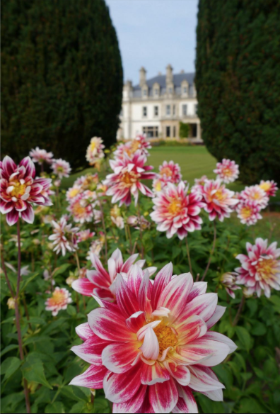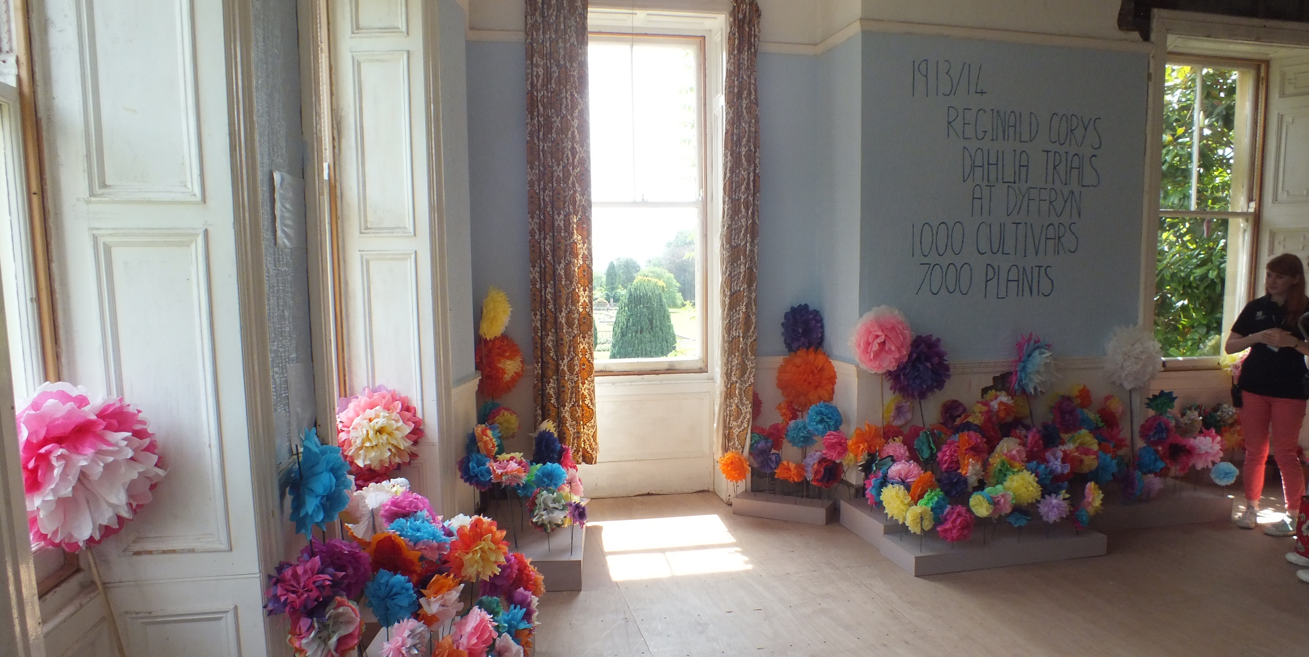 Cory was a great dahlia enthusiast, and with the help of Mr Cobb his gardener, he created a large trial ground for them, trying out 1,000 cultivars in 1913 and 1914. He became President of the Dahlia Society, and later established the Cory Cup for the production of new hardy varieties, which is still awarded by the RHS. The garden team at Dyffryn are hoping to to grow dahlias on the same scale, but in the meantime the house hosted a paper dahlia room and the cafe an unusual addition to the cake stand.