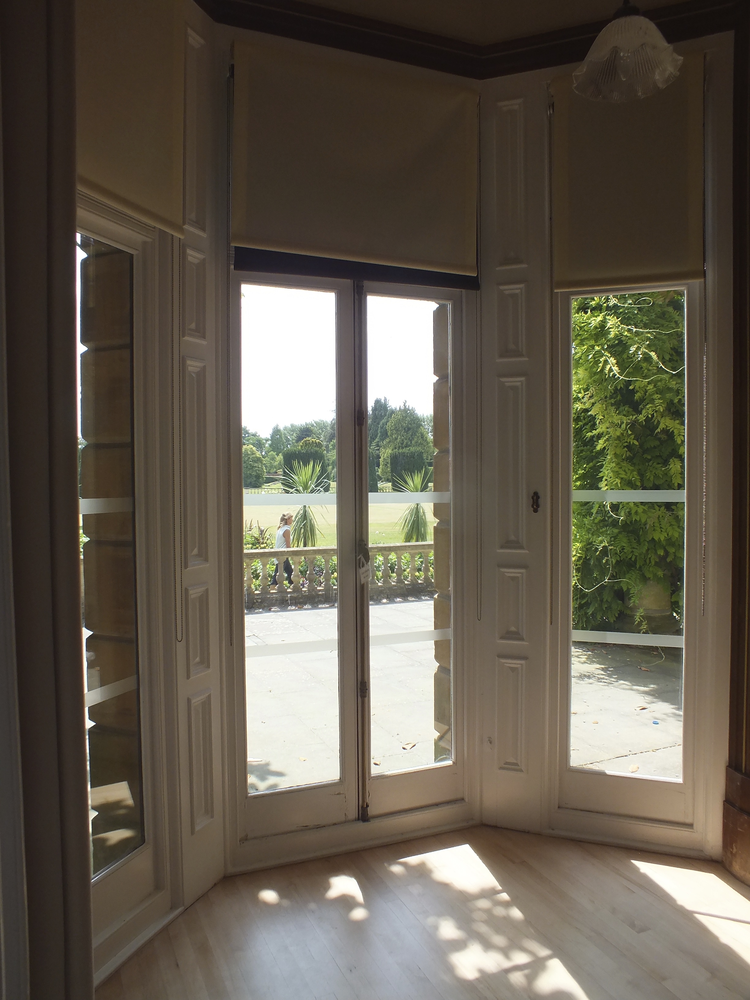 Immediately outside the south front of the house is a stone flagged terrace, overlooking formal Victorian flower beds, and then the Great Lawn and Canal. Mawson decided “to plan a great lawn extending from the old part of the garden on the south front, the object being to gain a sense of scale, a restful base to the house and a compensating expense of view from the principal rooms to make up for the lack of more distant landscape views.”