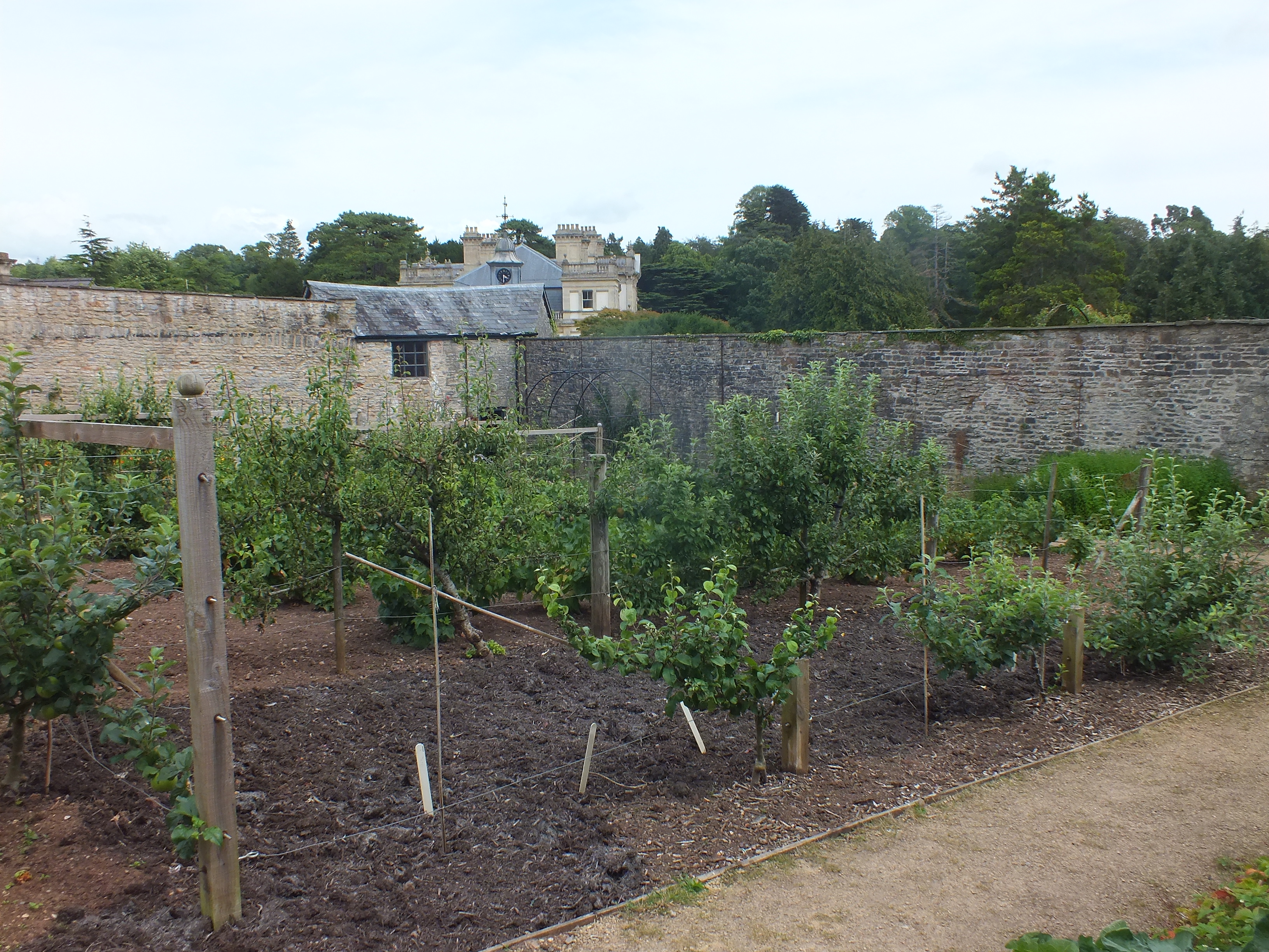 The garden is divided into two sections, with gardener’s bothies on the eastern wall. By the end of the nineteenth century a huge glasshouse had been built on the north side.