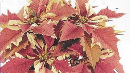 Ecke continues to grow 10,000 to 15,000 new seedlings each year and then eliminates all but about 20 after the first year of tests. Eventually, those survivors are reduced to 5‐10 new varieties of which only one or two might stand a chance of becoming commercial. This ruthless process of selection and culling has led to  varieties with marbled pink markings on otherwise off-white bracts  and another with pink flecks on the traditional red background.  2010 saw the claim to have read “the only true orange” and 2012 the first purple-bracted variety…here are just a few. BUT you have been warned!