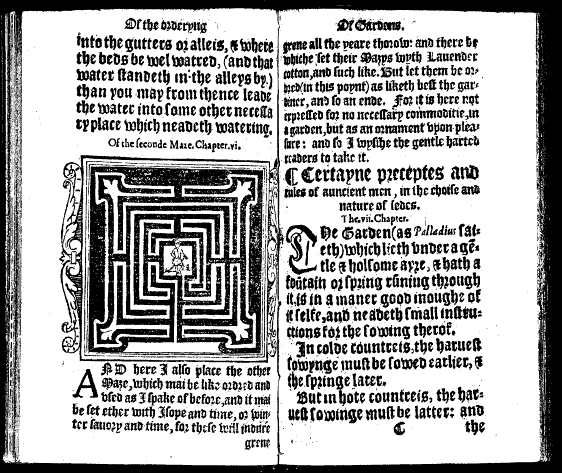 It has 69 short chapters containing ‘instructions for the choice of seedes, apt times for sowing, setting, planting, and watering, and the vessels and instrumentes serving to that use and purpose’ and sets forth ‘diuers herbers, knots and mazes, cunningly handled for the beautifying of gardens’.
