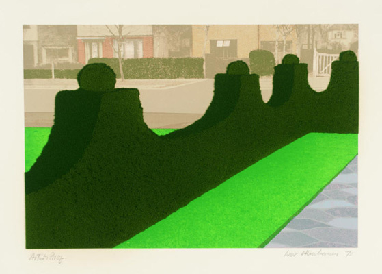 The 1970s saw Abrahams engage with gardens much more fully. He became intrigued by hedges, shrubbery and small suburban spaces, producing prints, reliefs, small-scale sculptures and larger works using a range of non-traditional materials.