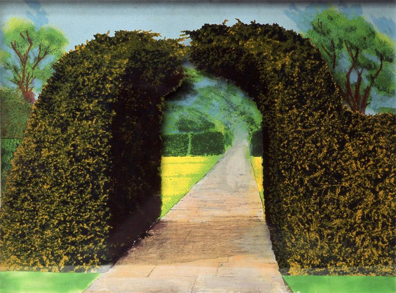 Abrahams concentrated on garden imagery — planting and architectural details, shrubs and ivy, lawns, steps and pathways, walls, follies and romance. He enjoyed the garden as a ‘ready-made’ repertoire of forms and effects representing a ‘group desire’, something dear and cherished by the English.