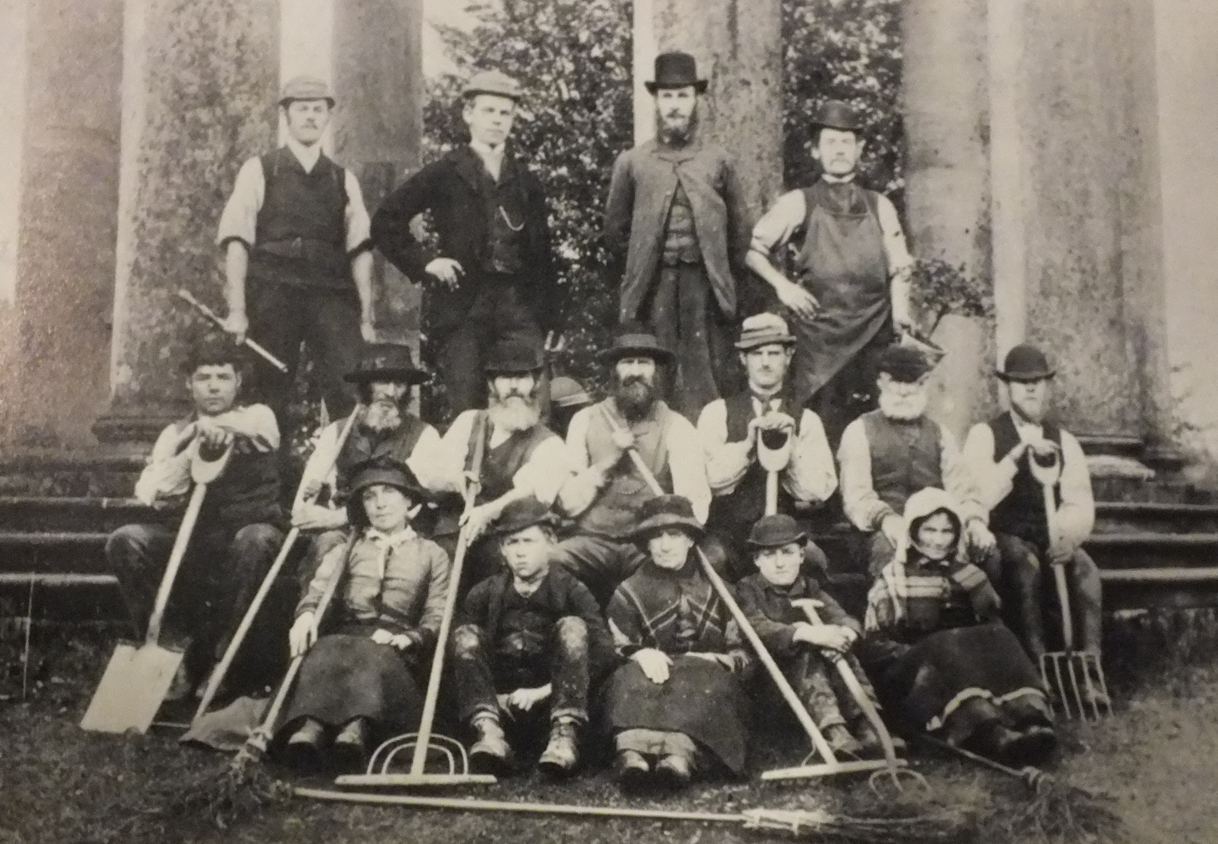 Michael Rochford with his garden staff, in front of the Rotunda in Duncombe Park