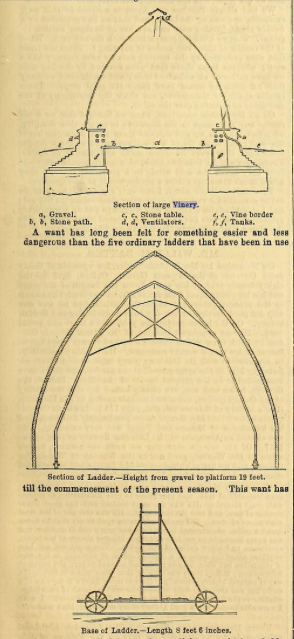 Michael [senior] lived just long enough to see his sons set out on their own business paths. He died in January 1883 experimenting to the last. An article in Gardeners Chronicle that month showed him debunking the myth that “worn-out Vines” were worth retaining because “it takes much time to get young ones into full bearing”. He had started 4 new 80 foot long vine houses in 1881 which were already producing over 5 cwt top-quality grapes each from new vines, and which were expected to produce even more in the coming season. (GC January 20, 1883)