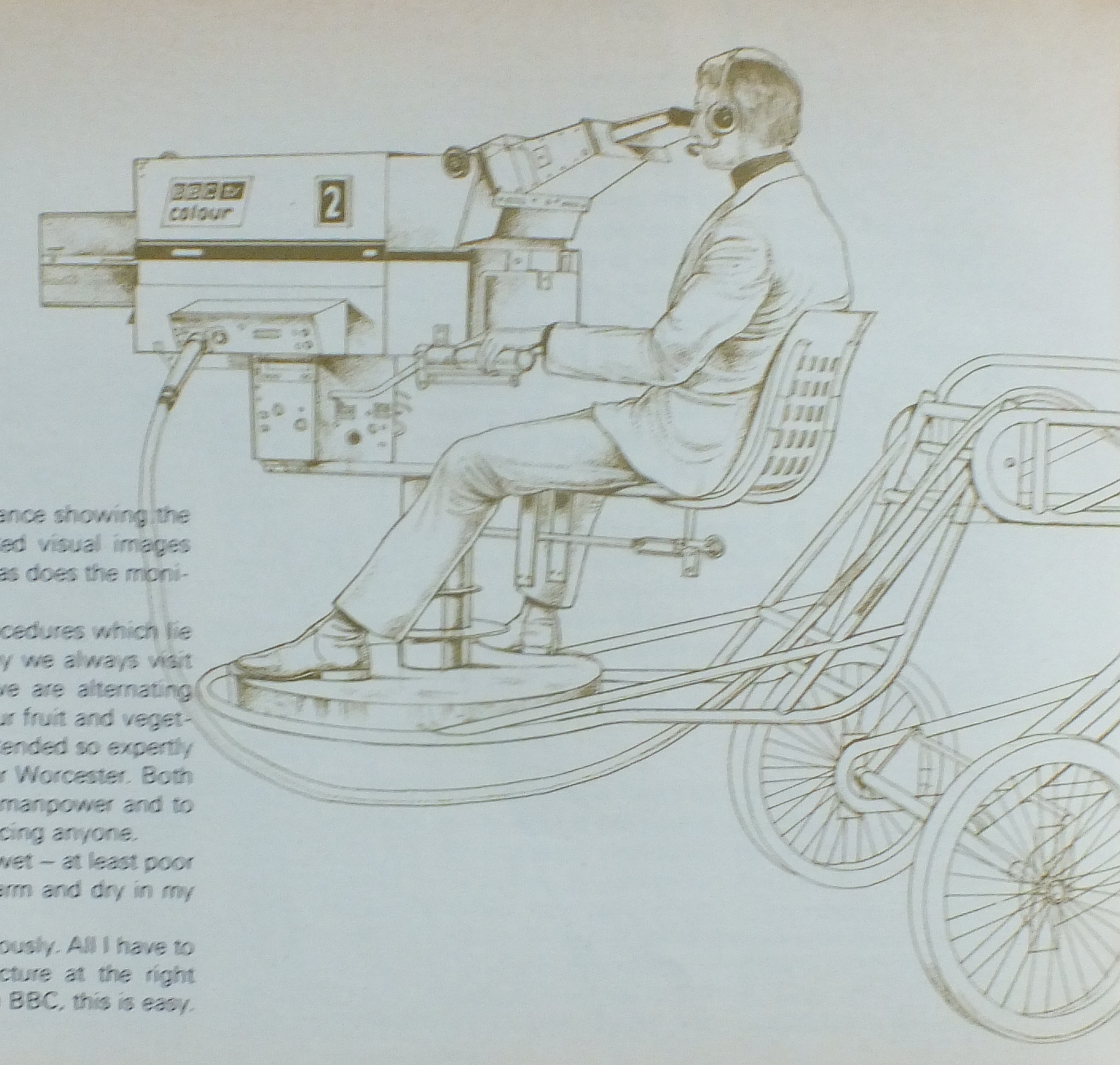 This was not as simple as it might seem. As can be seen from the photo the Outside Broadcast Unit needed large crews, not the one or two we might associate with recording today. This meant there had to be parking for three or four pantechnicons, room for a crew of more than 30 people – cameramen, sound engineers, recording engineers, production team, and riggers who had to manhandle not only the heavy cameras but the thick cables to be connected to the power supplies. It also meant stable wide pathways which could bear the weight of the cameras. Hand-held cameras did not come in until the very end of the 1970s and Barry Edgar one of the producers regretfully commented: “what gardens we could have covered if we had had some of these!” (Gardeners’ World Through The Years, page 9) . The whole process was made even more difficult because of the expense of moving such an enormous amount of equipment and people, so the gardens had to be big enough to have interest for two complete programmes to be recorded on any one visit.