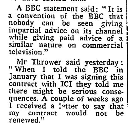 So Percy was not just a National Treasure he was also an astute businessman. All of these commercial involvements were just about acceptable to the BBC, but, at the time, they had a very strict policy about any of their presenters being directly involved anything which they saw as compromising the independence of their programmes.