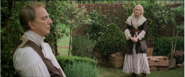 The film is directed by Alan Rickman, and he is blunt: “We play fast and loose with history anyway – it’s a joke that a woman like Sabine could have existed at all. It would have been impossible. The same with Le Notre.…. it wasn’t going to be a biopic at all.” Instead it was written as “a modern love story…[where] you forget about period and think, wow, a totally male dominated world in which women are just decorative objects” So “it’s a period movie that was also essentially modern.” That sets the tone for the film from the beginning.