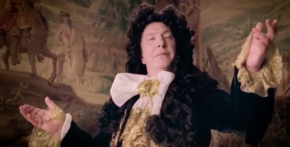 At the end of the day go and enjoy it [or not] if only for the wonderfully droll portrayal of Louis XIV by Rickman, looking at times as if he has just stepped out of a gilded frame, and for Stanley Tucci’s performance as his brother. But also go to see it for the very last scene: a tiny group of courtiers performing an elegant dance around Louis as he stands stock still, poised with hand on hip in the middle of Rickman’s miniature and simplified version of Le Notre’s famous Salle de Bal while the CGI pans upwards and outwards over the rest of the gardens at Versailles which are the real masterpiece on display.