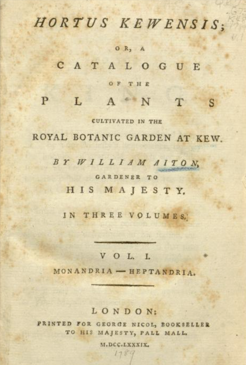 I want to stress that I am not a botanist, and certainly not a taxonomist. That maybe why I have been [so far] completely unable to work out exactly which plants are being referred to. In some cases the trial record is the only source of the plant name used, and thus may have been misspelt or confused by the court notetaker, an editor or the printer. With so many new plants being imported nomenclature was erratic anyway, and names unfamiliar and frequently changed. Unfortunately, for some plants mentioned nor is there anything similar-sounding in any of the contemporary lists of plants such as William Aiton’s Hortus Kewensis, the most comprehensive account of plants being grown in England at the time, or in the commercial catalogues of James Colvill, one of the nurserymen most closely involved in the case.
