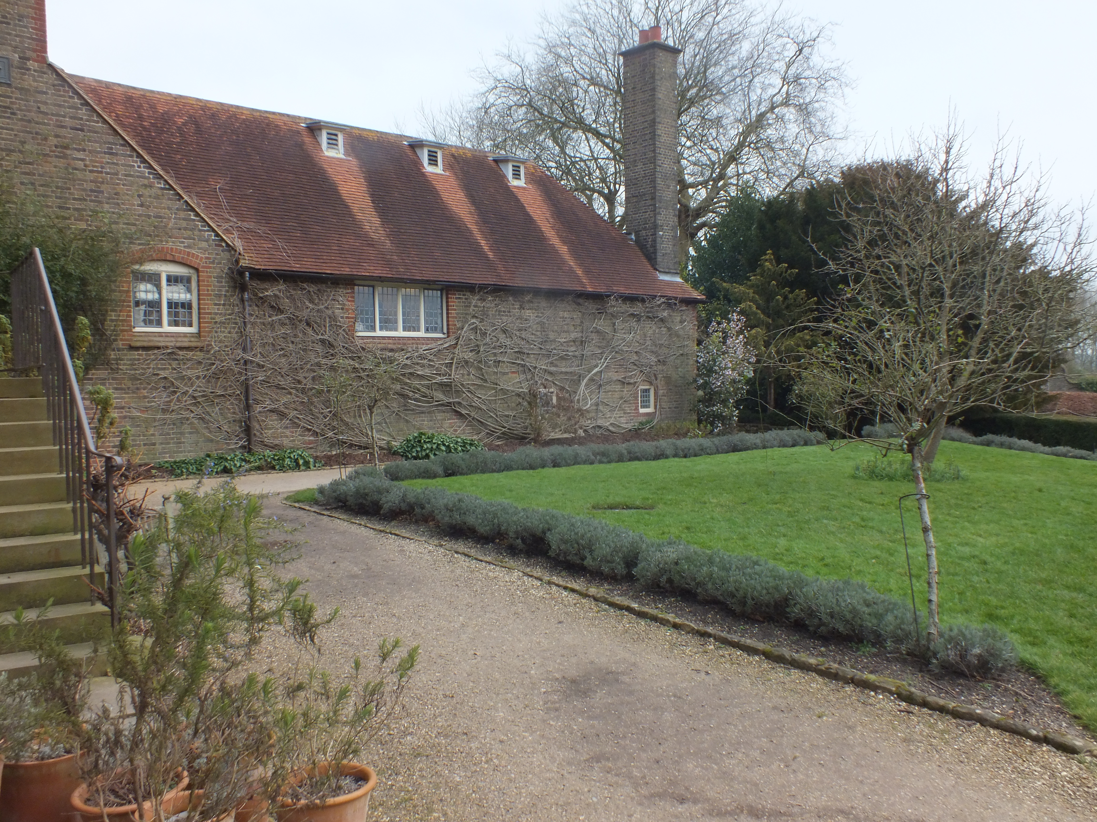 The gardens not really designed to be seen or approached from the north side and are most easily reached by passing though the house. There is, however, a narrow path that runs round the side of the house to the Lavender Lawn, then leads to the main Terrace.