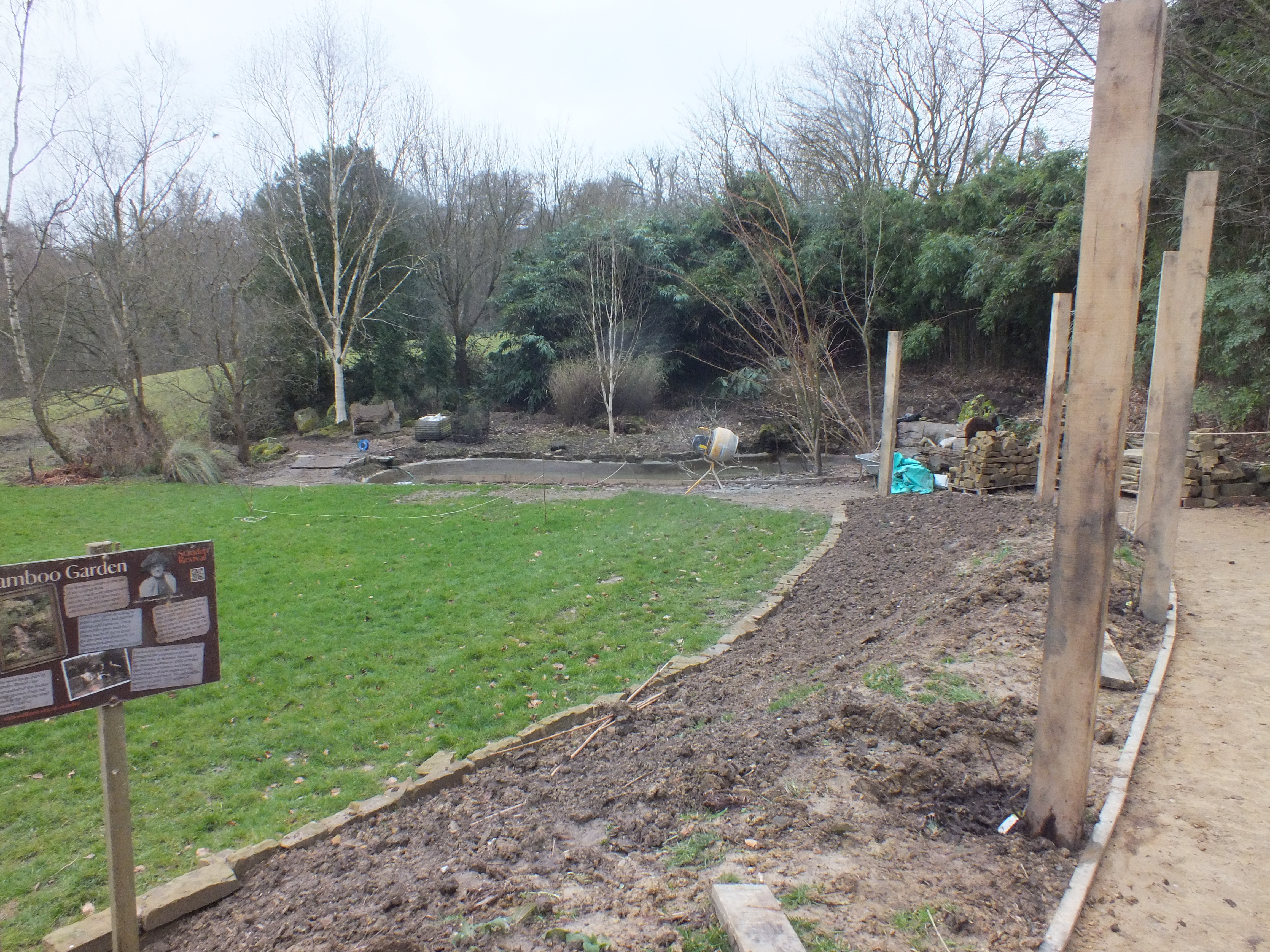 As part of the restoration project the pond is being repaired and replacement rose posts and trellising installed along the pathways.