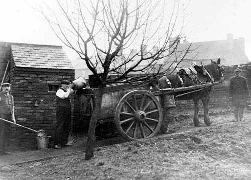 Night Soil collectors emptying their carts onto allotment land – © Hull City Council, Hull Public Health Department Photograph
