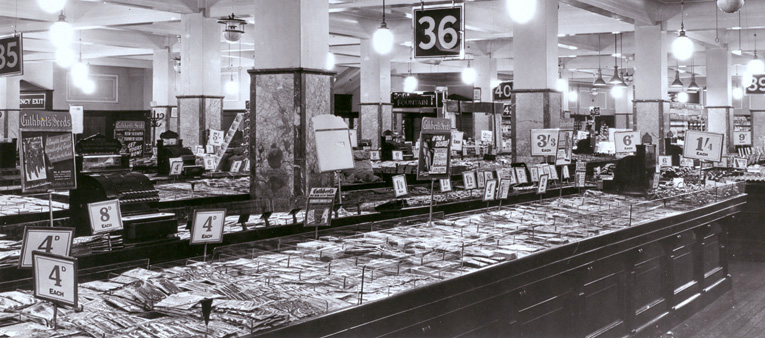 Other best sellers in the 1930s included rubber garden hoses for threepence, grass seed which was sold loose at sixpence for six ounces (about fifteen pence a kilo at the time), as well as yard-lengths of picket fencing for sixpence (around 3p per metre).