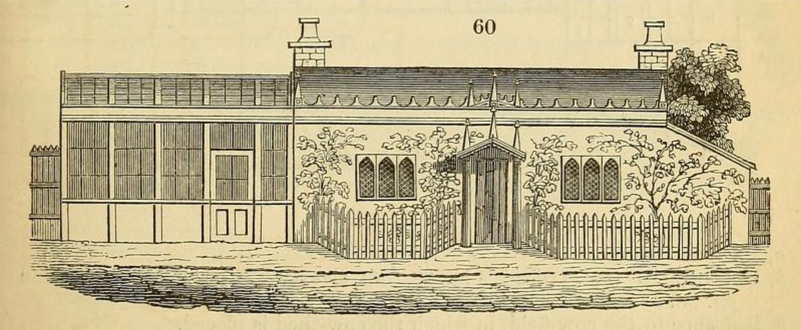 The kitchen garden, gardeners house, poultry shed, piggery and cowshed were situated about 100 yards away on the other side of the lane to the house, and Loudon gives a fully detailed plan of them as well.