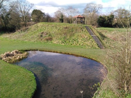 There is a free-standing mount, 5m high, in the bailey or courtyard of Whittington Castle, near Oswestry in Shropshire. The Norman castle was originally a border fortress but after Edward I’s conquest of Wales it lost its strategic importance and seems to have become more domesticated with a mention in documentary sources from 1413 of “a garden with a ditch of water around it.”