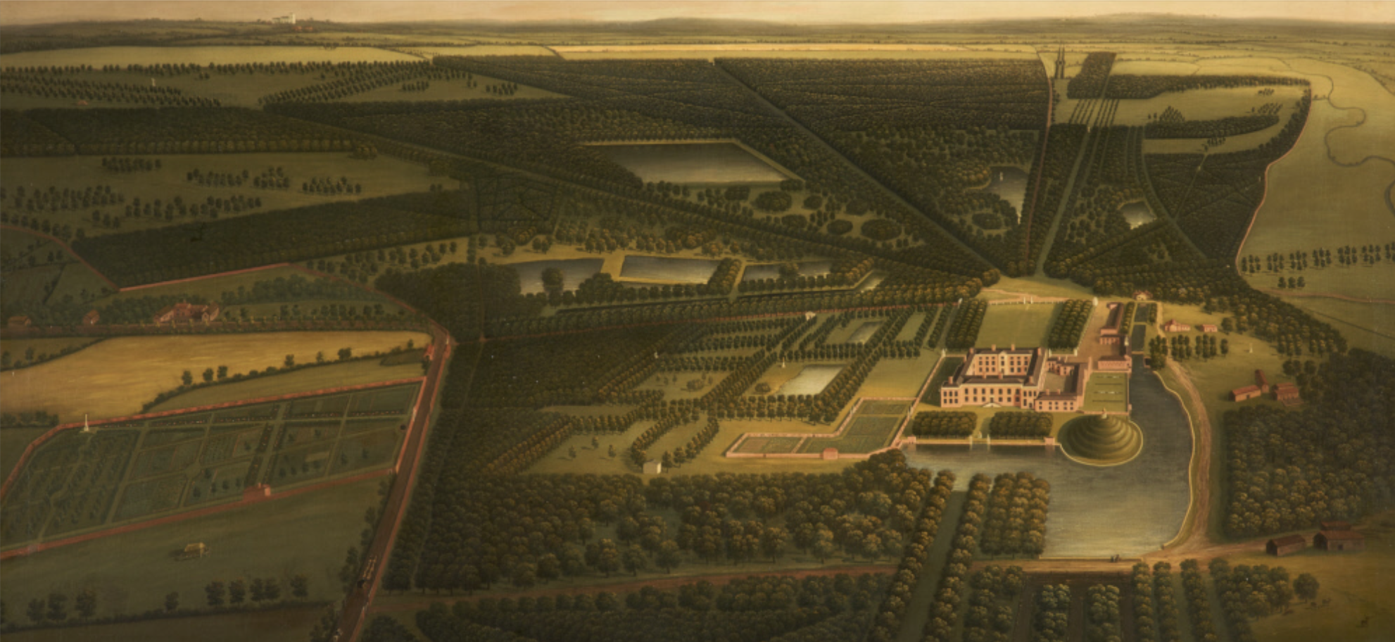 The mount survived the redesign of the park and gardens by the 2nd Earl of Warrington in c.1720-50, and it can be seen on the Harris “bird’s-eye” paintings of 1751. By this time the gazebo had been replaced by an urn on a plinth.