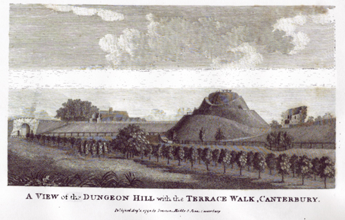 Another ancient site was commandeered at Canterbury. Here it was a Roman burial mound from the 1st or 2nd century against the city wall that was incorporated into a Norman castle. Even though it was soon abandoned the area was still known as Dungeon Hill – or Donjon – until the 18thc. This was corrupted into Dane John giving rise to all sorts of alternative versions of its history in the 18th and 19thc.