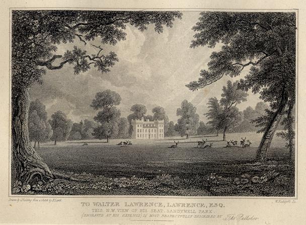N.W. view of Sandywell Park ..” engraved by W.Radclyffe after a drawing by G.Fielding & Henry Lamb, published in Griffiths History of Cheltenham and Its Vicinity, 1838