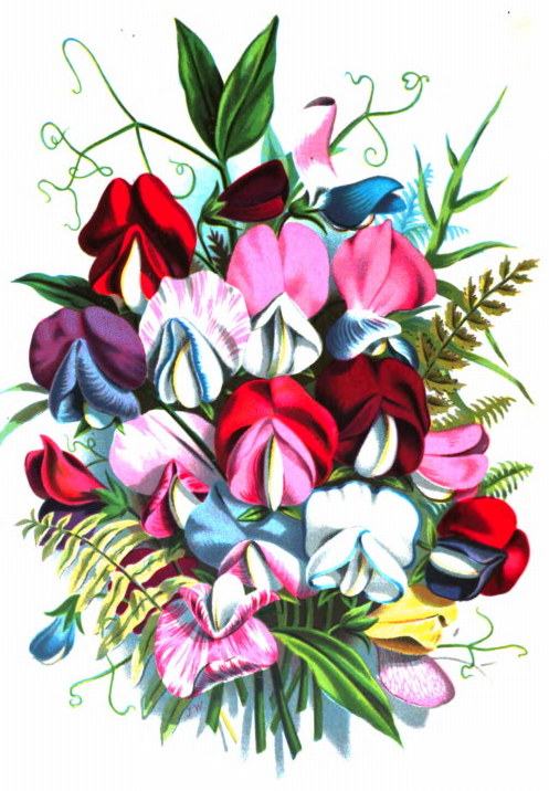 Sweet peas are one of the glories of the garden. Relatively easy to grow and loved by everybody for their heady scent and delicate colouring, it’s hard to believe that the vast range of varieties we grow all descend from a plant in a monastery garden in Sicily, collected and cultivated by a Franciscan monk, Francisco Cupani at the end of the 17thc. It was Cupani who sent seeds to botanic friends and correspondents all over Europe including Robert Uvedale, an Enfield schoolmaster in 1699 or 1700 who is responsible for introducing this garden favourite to Britain.