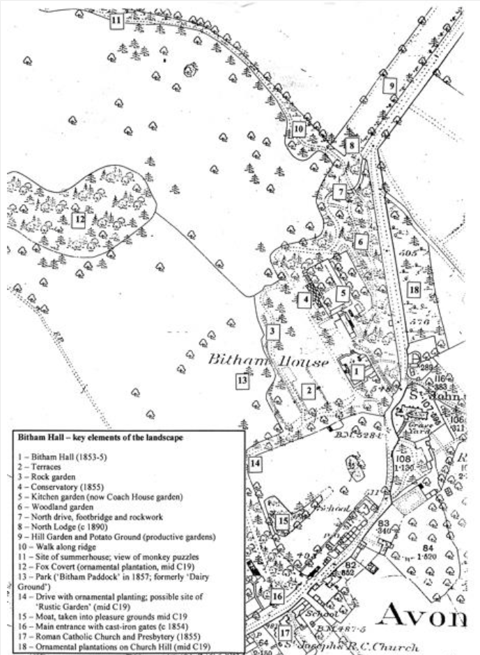 Plan of the grounds of Bitham Hall http://www.avondassett.com, 2014