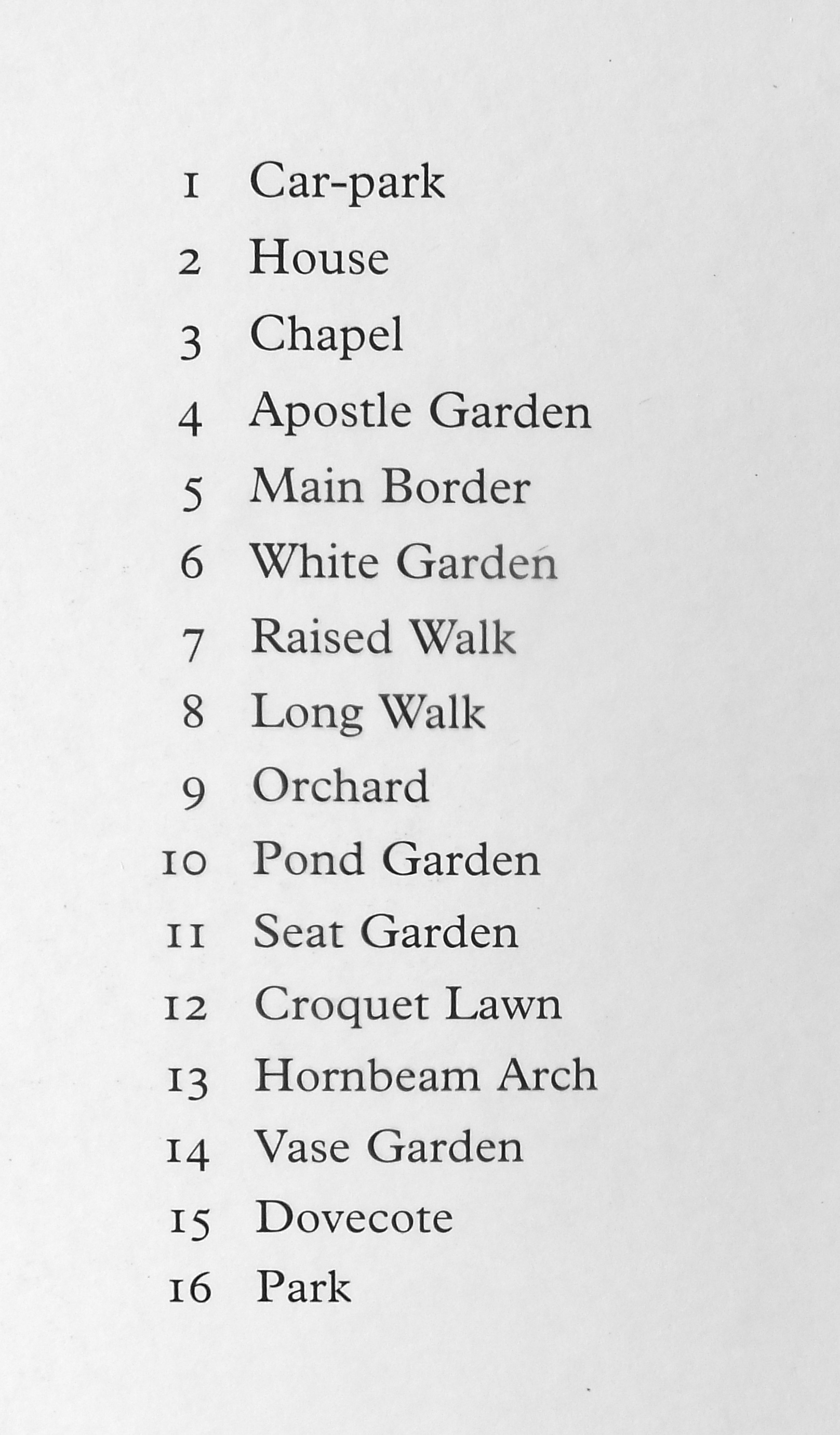 They began by creating a grid of rectangular spaces of varying sizes and atmospheres, divided by yew hedges and stone walls, and connected by straight paths. It was very much in the style of Thomas Mawson and Arts and Crafts movement, and in the same spirit that Sir Walter’s brother was creating at Avebury Manor. The gardens are now listed as Grade 2 on Register of Historic Parks and Gardens of special historic interest in England. The plan above is now out of date [although it comes from the latest National Trust guide available] because the garden has now been extended.