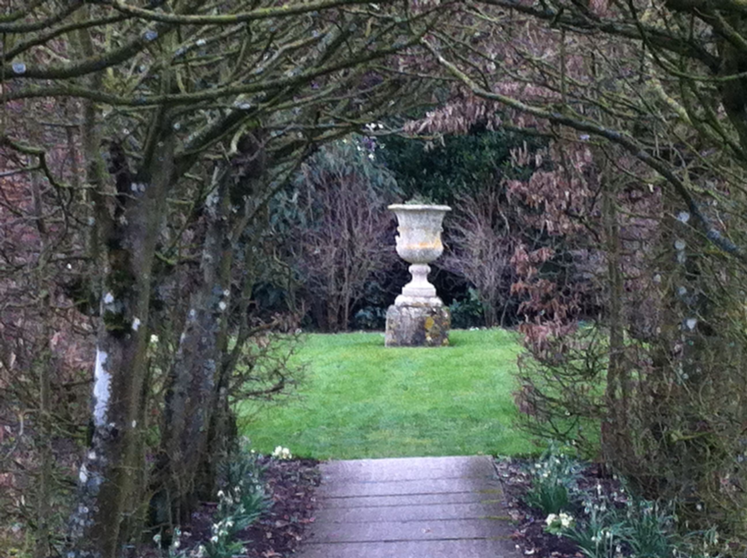 The Long Walk leads in turn to a small Pond Garden, and then either through a hornbeam arch to the Vase garden…or turning back towards th house through the Seat Garden and across the croquet lawn.
