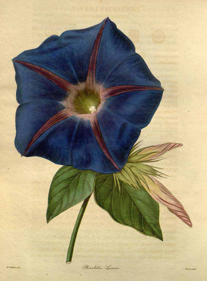Ipomoea indica (Burm.) Merr. [as Pharbitis learii (Knight ex Paxton) Lindl.] blue dawn flower, Morning glory Maund, B., Henslow, J.S., The botanist, vol. 4: t. 184 (1840) [A.I. Withers]
