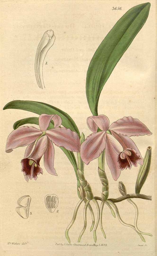 Cattleya pumila Hook. Curtis’s Botanical Magazine, vol. 65 [ser. 2, vol. 12]: t. 3656 (1839) [A.I. Withers]