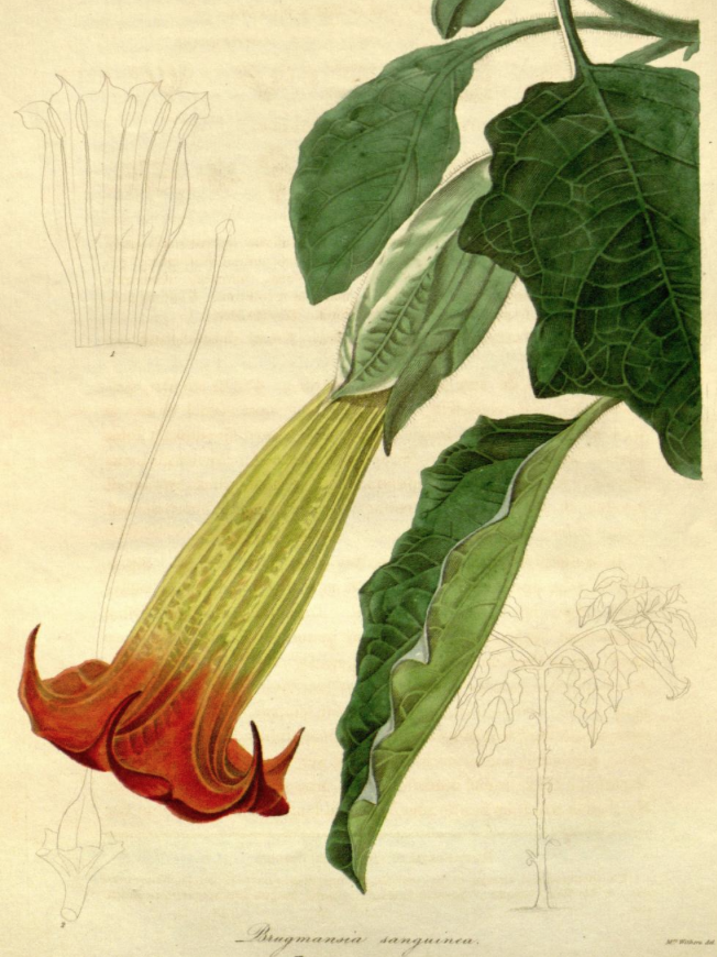 Thorn Apple , Brugmannsia sanguinea,  from The Botanist vol.1, 1836