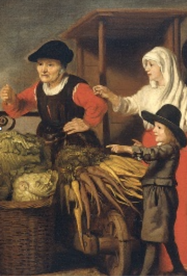 But once you have seen one orange carrot in a 16th or 17thc painting you begin to spot them everywhere! Here are a few more… but notice the nationality of the painters.