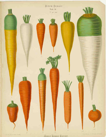 Yellow and a few violet roots appeared in the second generation, with just a very few red showing up in the third, but importantly Vilmorin noticed that these red ones, unlike the other colour variations, came true from seed. From this it is possible to see how those early modern growers in Holland may have managed to breed orange carrots.