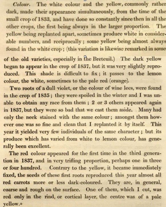 But it in his observations on the colour of carrots you can really see signs of Mendelian laws in action.