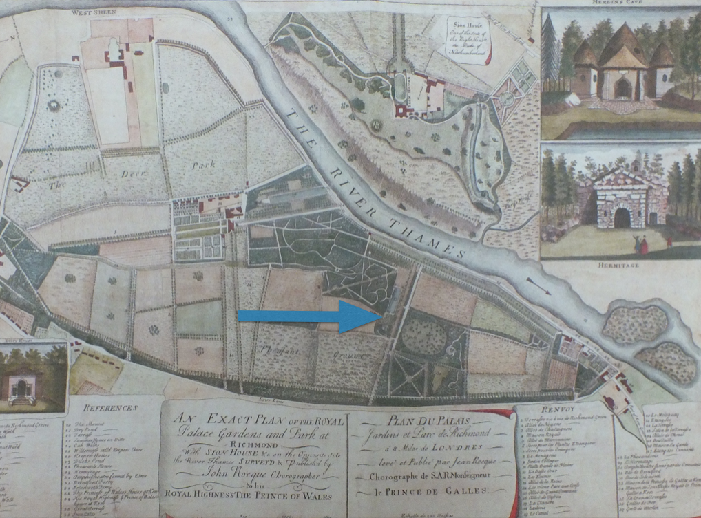 Caroline’s gardens were soon neglected and most have disappeared. Merlin’s Cave was demolished during Brown’s redesign of Richmond in 1766, while the Hermitage was left as a ruin and its stones later incorporated into the Rock garden. Caroline’s political skills were considerable and her passion for gardening enormous. The results of the marriage of her overriding interests may not have had the size, subtlety or grandeur of Stowe, and may even appear ridiculous to twentieth century eyes but her attempts were more than just an interesting addition to the diversity of the cultural and political scene of its day, and deserve not to be overlooked.
