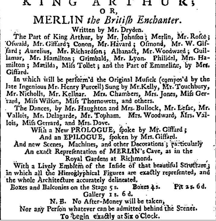 And not just once. It entered the repertory in at least 4 different London venues….and with particular mentions of Merlin’s association with the Protestant Succession and the scenery being an exact copy of the real thing!