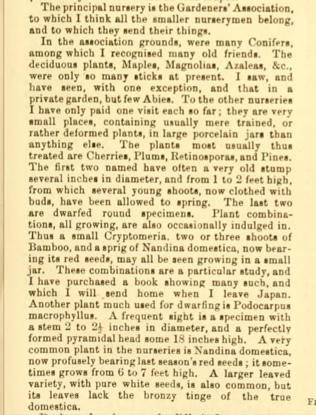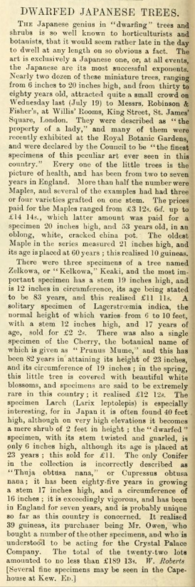 Of course they quickly became fashionable, with articles appearing in the gardening press, including one about an auction of dwarf Japanese trees in the July 29, 1899 issue of The Gardeners Chronicle and another in the same journal by the Yokohama Nursery itself on how to grow Japanese dwarf trees (1899).
