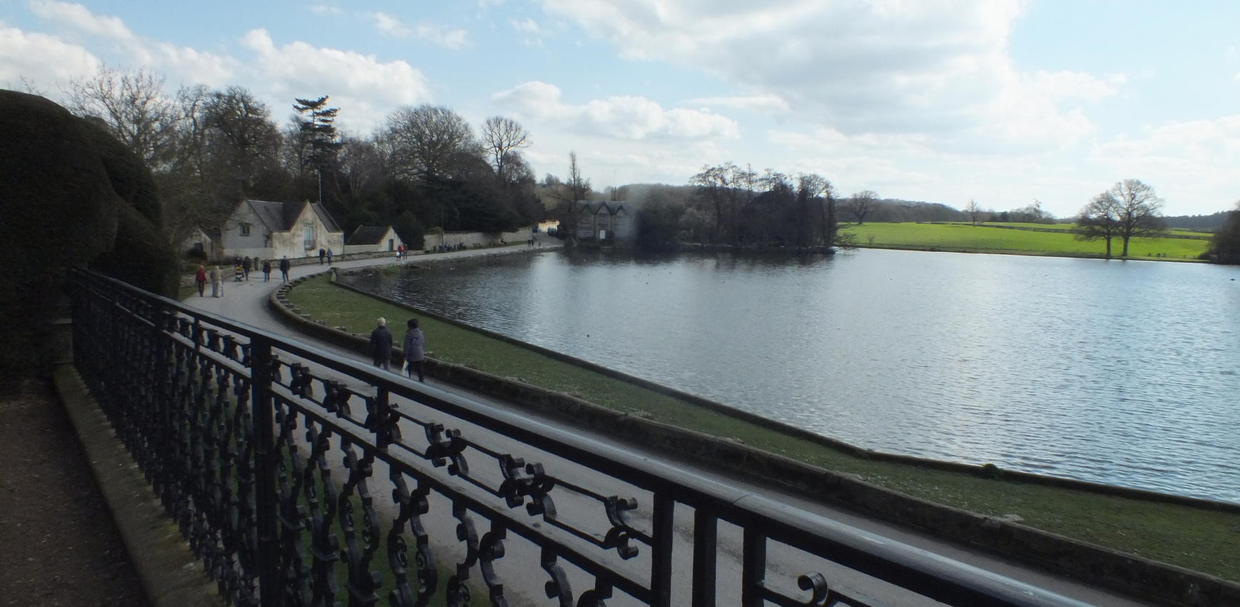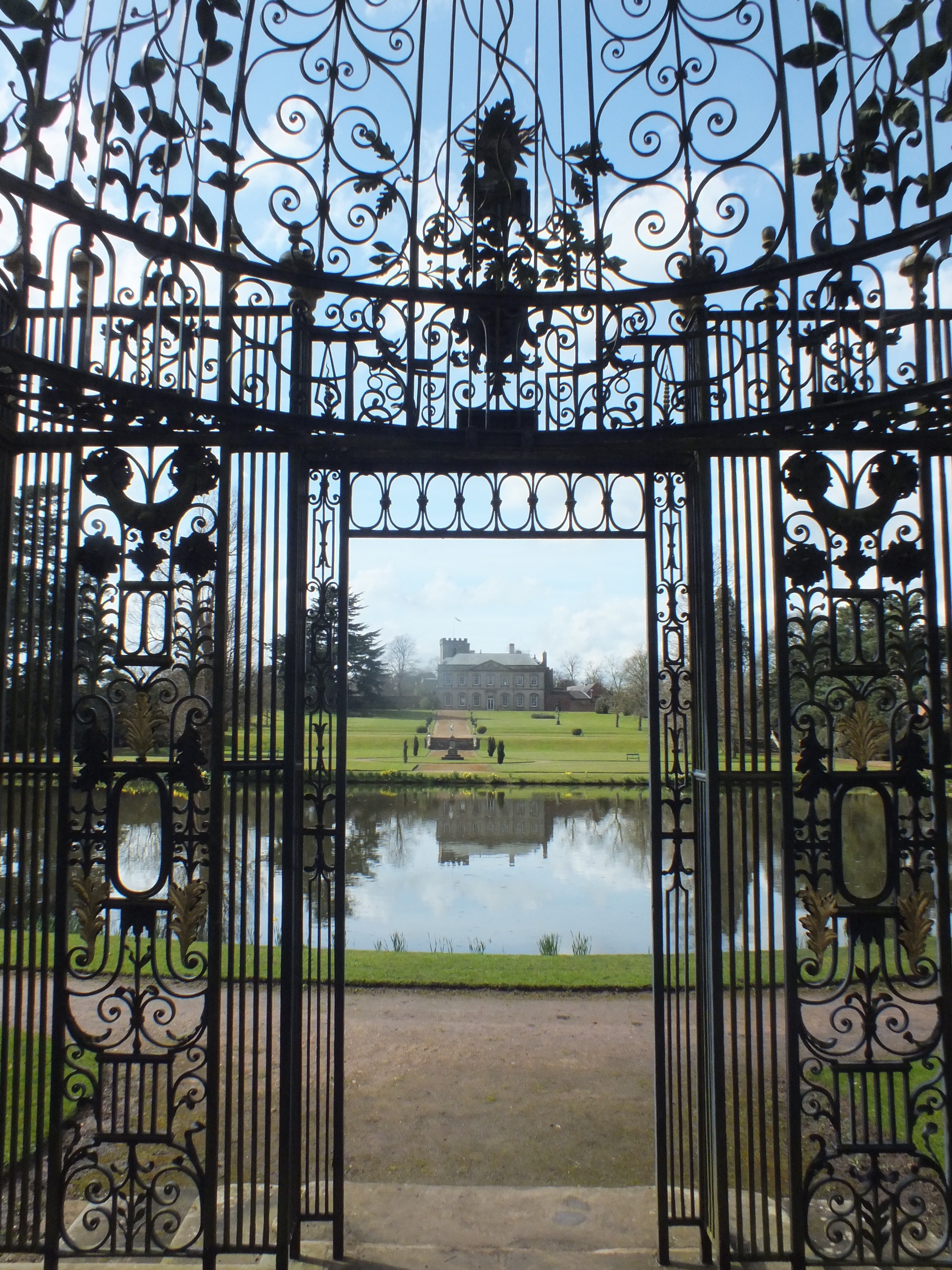 Not as good, however, as the view from the terrace in front of the garden front of the house in the opposite direction – back over the road to the Pool through an elaborate iron balustrade by Robert Bakewell which was restored in 1994.