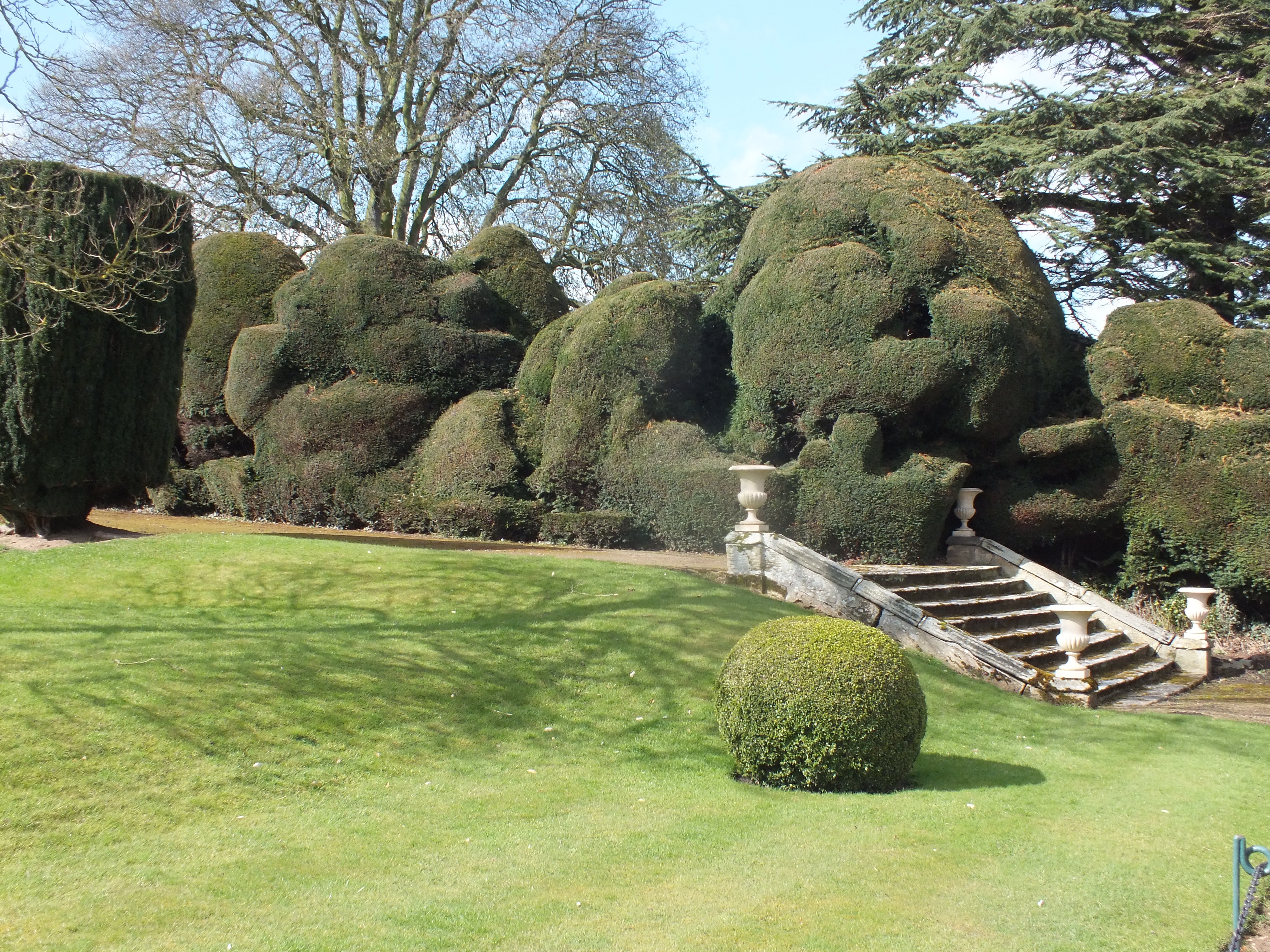 From there the visitor is faced with a long narrow [and narrowing] slice of garden, walled on both sides, with the hall hidden away on the right. There are several mature specimen trees but the eye is drawn to the small fountain in the distance, which can be glimpsed between billowing yew hedges.