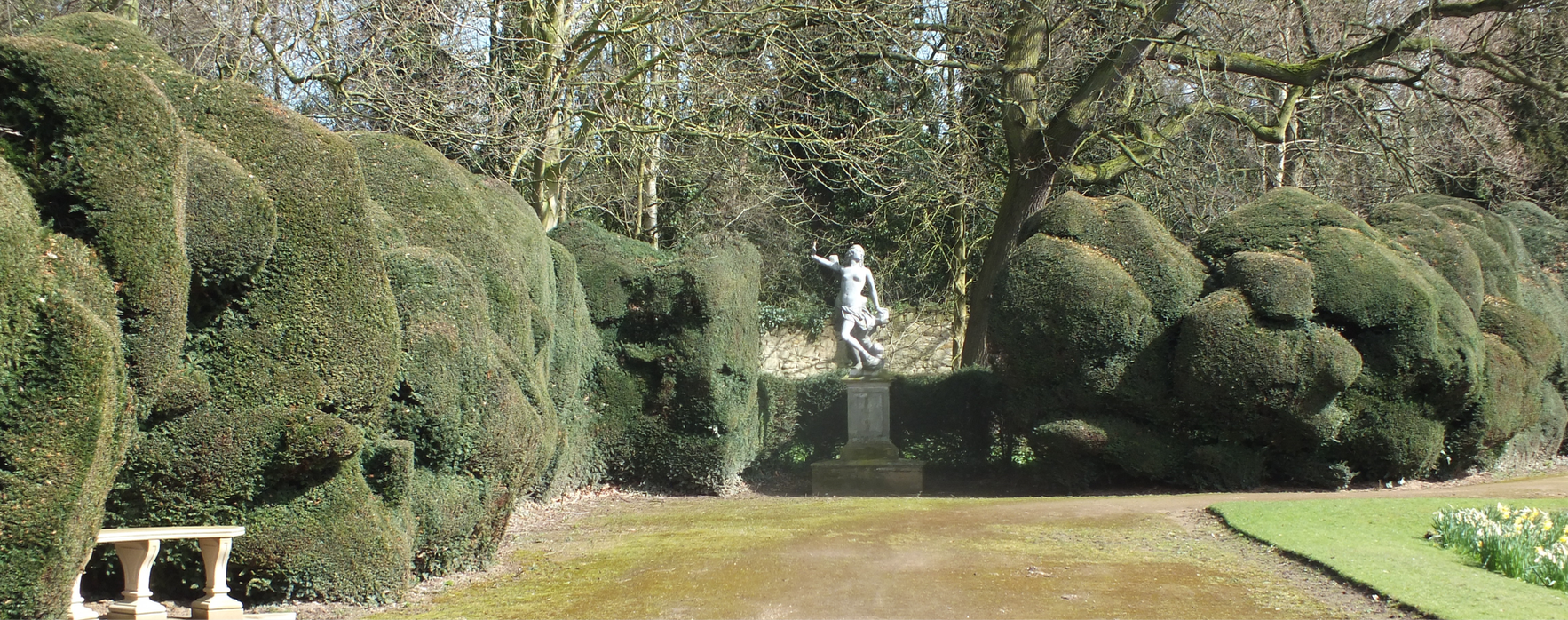 The other, the Yew Walk, is nowadays effectively a tunnel which completely screens a large section of garden from the house. Indeed at first glance it appears to be the garden’s southern boundary. Perseus, a companion figure to the Andromeda stands at the eastern end.