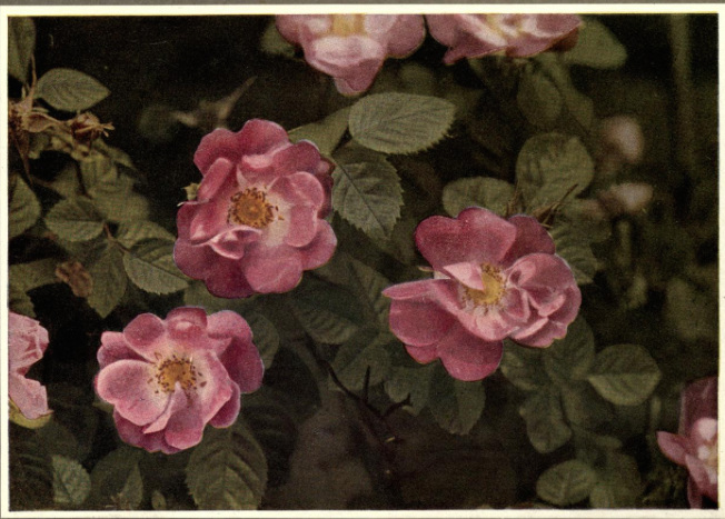 Penzance Briar, from Beautiful Flowering Shrubs, by Gertrude Clarke Nuttall,1922 https://archive.org/details/beautifulfloweri00nuttrich
