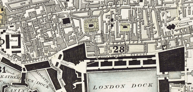 Just shows that you should never trust paintings – compare that description with this image of the centre of Wellclose Square in 1845. http://spitalfieldslife.com/2012/12/30/the-lost-squares-of-stepney/fig-16-2/