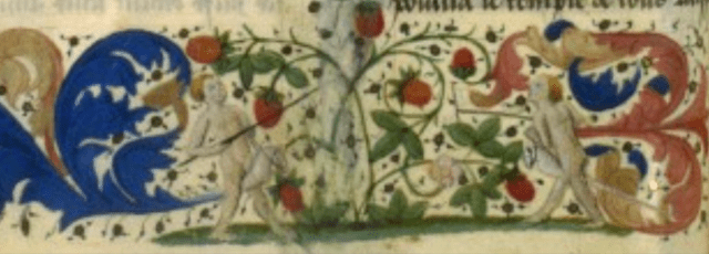 This more racy view of the strawberry probably comes from its association with sin and temptation. As a plant it creeps low on the ground traits it shares with the serpent in the Garden of Eden.